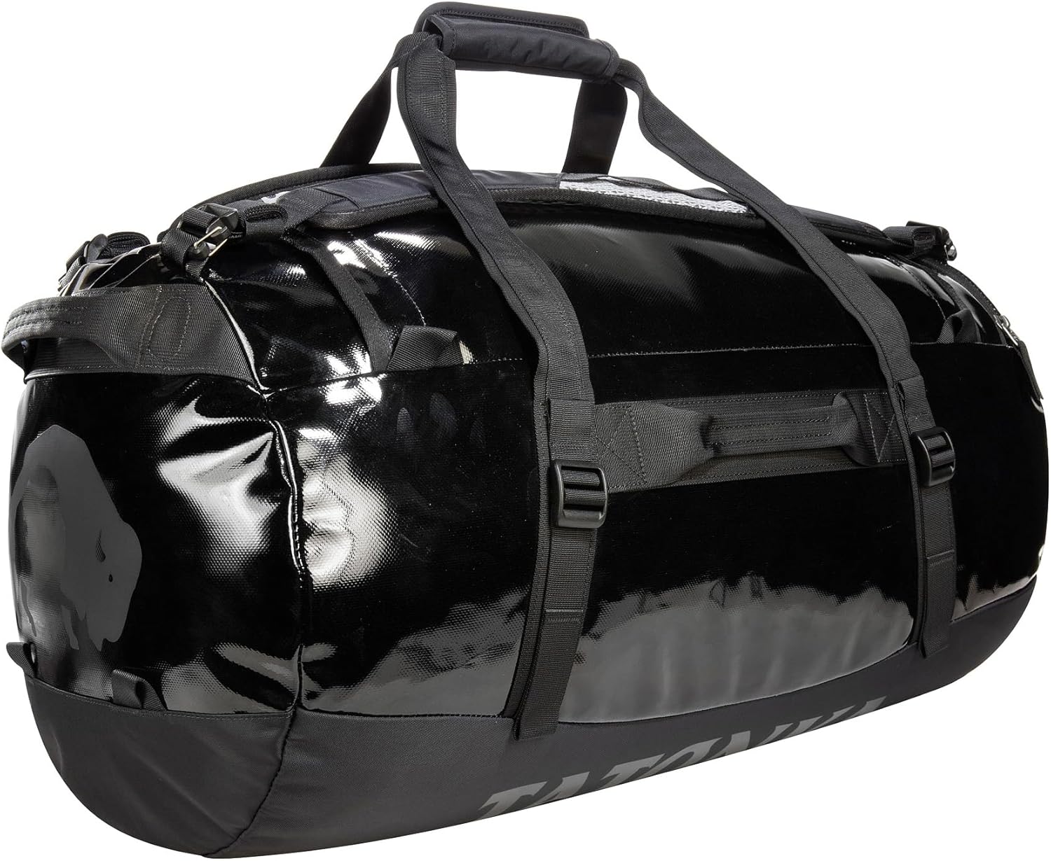 Sturdy travel bag with removable backpack shoulder straps, made of TPU coated tarpaulin material. The large zip opening allows the barrel to be loaded comfortably, and handles on all four sides, wide carry handles and removable backpack shoulder straps ensure easy handling. The bag has flat organisation pockets in the main compartment, a spacious zip pocket on the front panel and compression straps to reduce volume when needed.